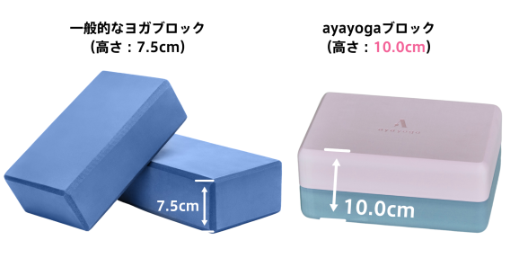 一般的なヨガブロックは7.5cmですが、これだと女性の体をサポートするには高さが足りないんです。
