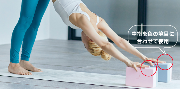 だから、ヨガブロックを使うことでポーズがグラグラせず、「骨盤が開きやすくなる」「膝〜太もも裏が伸びやすくなる」など